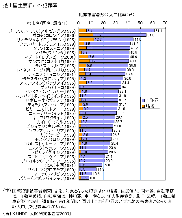 次の資料は途上国主要都市における犯罪被害者数の人口比率です。